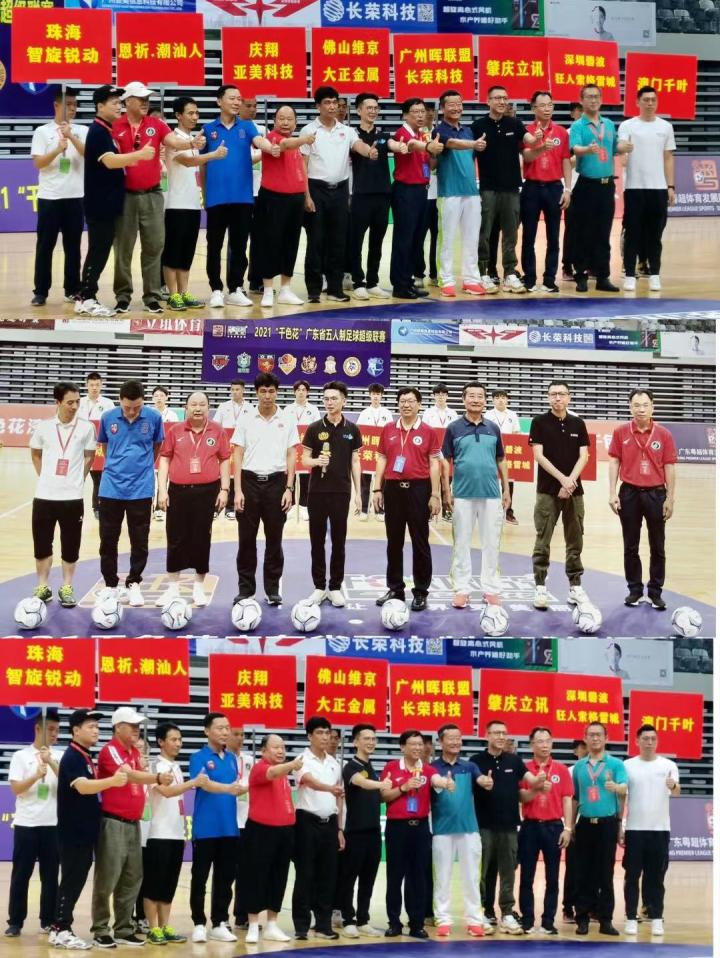 下午两点千色花第10届粤超联赛开幕式在豪华的肇庆新区体育中心体育馆内揭幕,肇庆市体育总会会长王葵、肇庆文广旅体局二级调研员周文耀出席,广东千色花化工集团副总、珠超俱乐部总经理梁志聪宣布比赛开幕。广东省五人足球协会会长刘孝五先生,广东锐丰体育总经理沈琦先生,广东省五人足球协会副会长、原太阳神足球学校校长彭永强,肇庆市足球协会副主席梁键强,广东省五人足球协会副会长江衍彪,肇庆新区管委会四级调研员、工会主席罗家强、锐丰集团副总刘建华等10位嘉宾参加了开幕式的开球礼,预示着10届粤超——十全十美! 8支参赛球队面对如此高档的家——肇庆新区体育中心,都十分激动!草根球员能有这样的“待遇”实属不易!