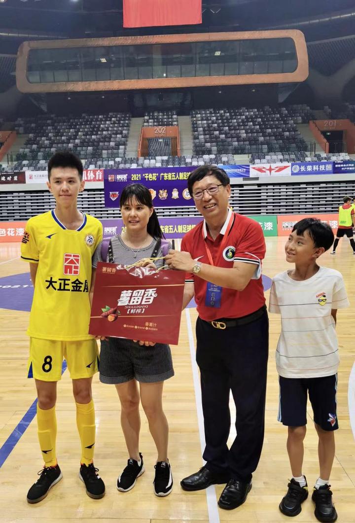 本届粤超第一轮比赛日正值母亲节,佛山维京队中的8号队员罗林欢带着爸爸妈妈也来到赛场,这一幕被眼尖的广东省五人足球协会会长刘孝五看见,球员一般带父亲,或父亲带儿子来看球的都比较多,母亲来到赛场看儿子比赛的相对比较少,母亲节这一天妈妈来看球的意义就更加不一般了!于是五哥来到赛场中心将赞助商的一箱“薯留香”奖给了这位来到比赛现场的母亲。