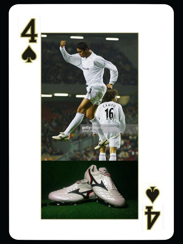 在罗纳尔多的时代,巴西有一位非常另类的前锋,他曾经两次获得过欧洲金靴奖,他就是空霸贾德尔。据说他还是教c罗头球的大哥,贾德尔当年在格雷米奥队异军突起,带领球队获得南美解放者杯,自己成为最佳射手。此后他加盟波尔图,成为欧战金靴,又在加拉塔萨雷和里斯本竞技获得成功,但却因为巅峰大罗的存在一直无缘国家队。在职业生涯初期和末期,贾德尔都曾经使用美津浓足球鞋,还在英超博尔顿时期使用过里瓦尔多的wave cup 03款。
