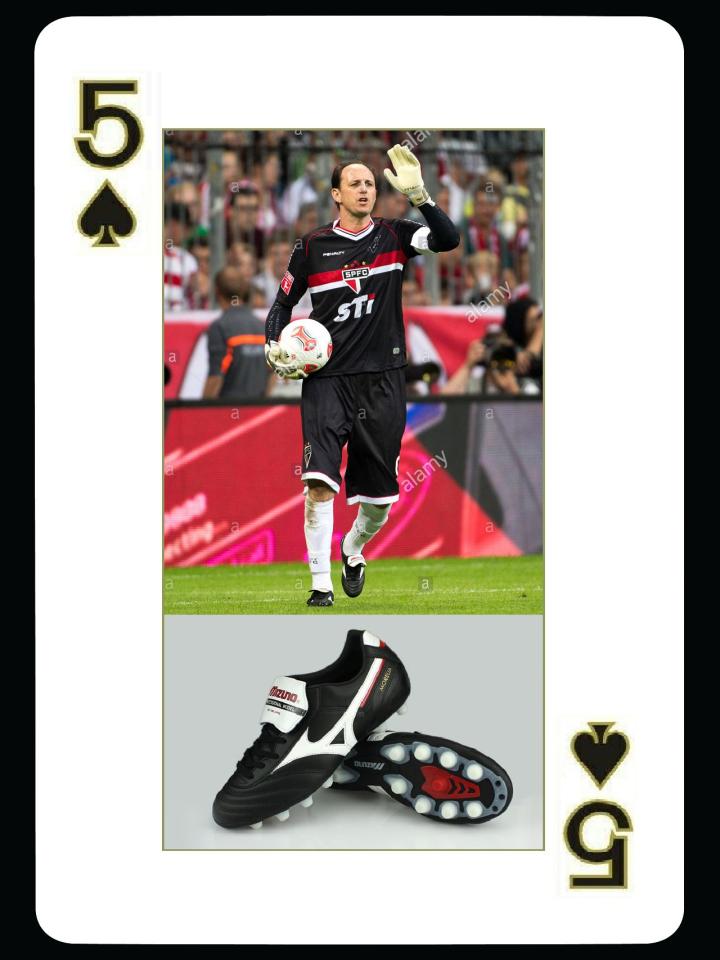 最后一位球星就比较特别了,职业足坛最会进球的门将,巴西人切尼,22年职业生涯打入了131个进球,当然基本都是任意球和点球。作为巴西球员,切尼也喜欢穿morelia球鞋,最常见的是黑色的morelia,当然也穿过白色,他穿的都是morelia2代,经过对他球鞋的观察,发现他各种型号都穿,应该有印尼产版本,还有morelia的老款ul进行过涂黑处理,不排除他自己买球鞋的可能性。
