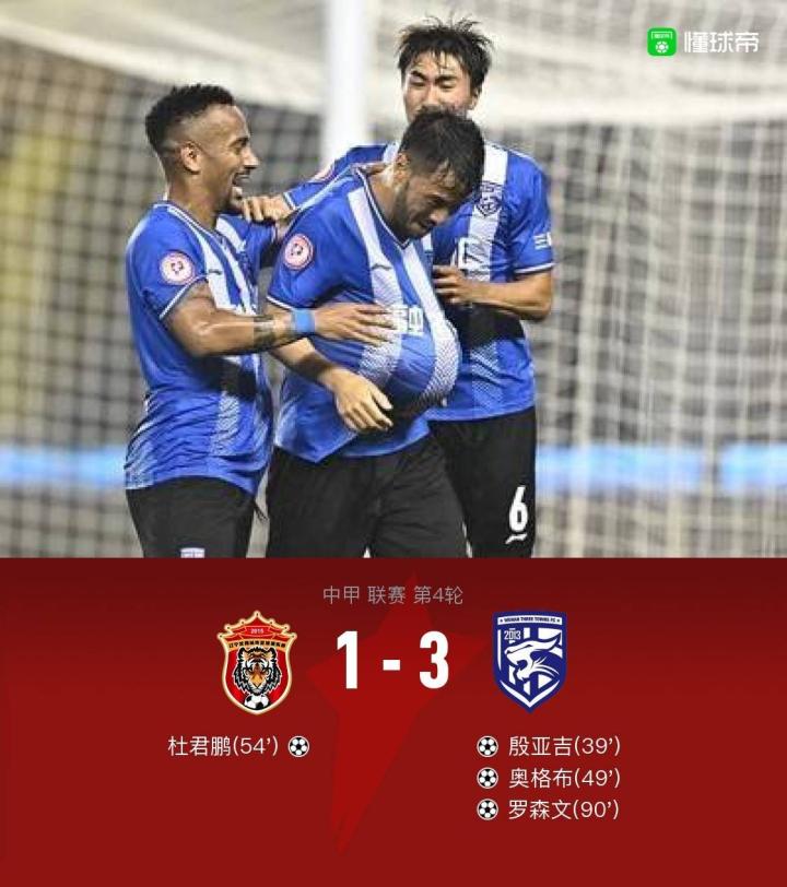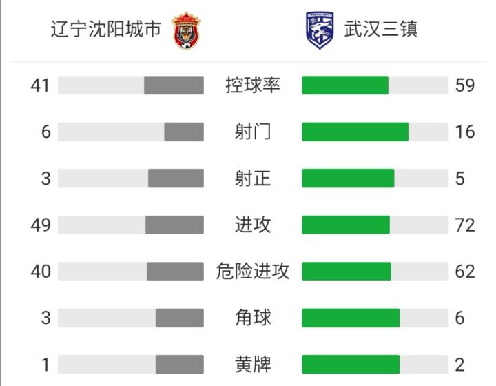 沈阳城市1-3武汉三镇,殷亚吉、奥格布破门,荣昊献助攻