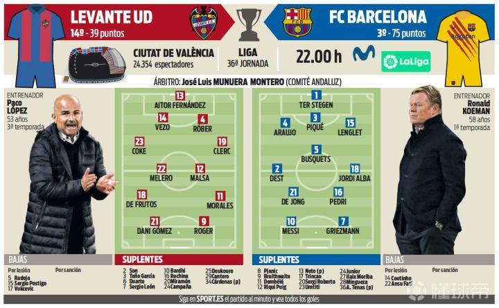 莱万特-巴萨 首发预测今晚巴萨将南下奔赴瓦伦西亚...