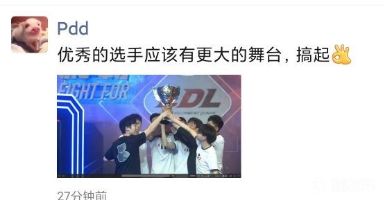 YM获LDL春季冠军,PDD:优秀的选手应该有更大的舞台,搞起 峡谷全视野 峡谷全视野2021-05-12 23:21今日,英雄联盟LPL次级联赛LDL春季赛决赛中,YM以3-1的比分战胜了FPB,获得了2021LDL春季赛冠军恭喜Qingtian 获得2021LDL春季赛决赛FMVP!心有猛虎,细嗅蔷薇!YM战队老板PDD更新朋友圈:“优秀的选手应该有更大的舞台,搞起”展开更多