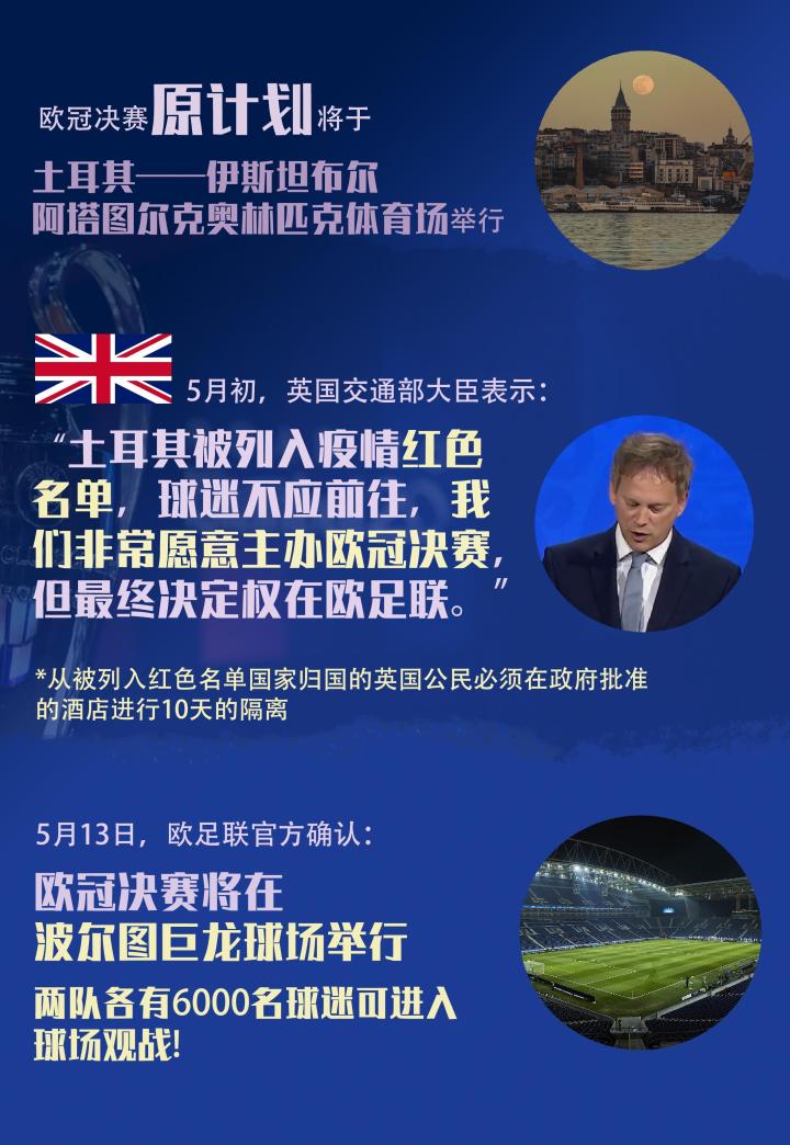 由于本应主办欧冠决赛的土耳其被英国列入防疫红色名单之中,所以欧足联选择了葡萄牙波尔图的巨龙球场作为本赛季欧冠决赛的比赛场地。