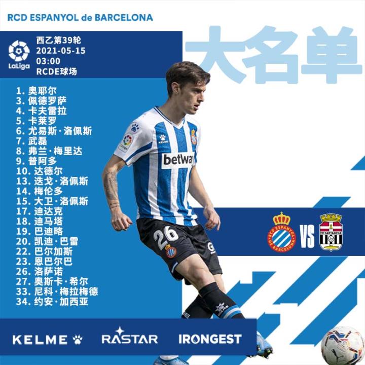 【西班牙人vs卡塔赫纳】大名单公布!