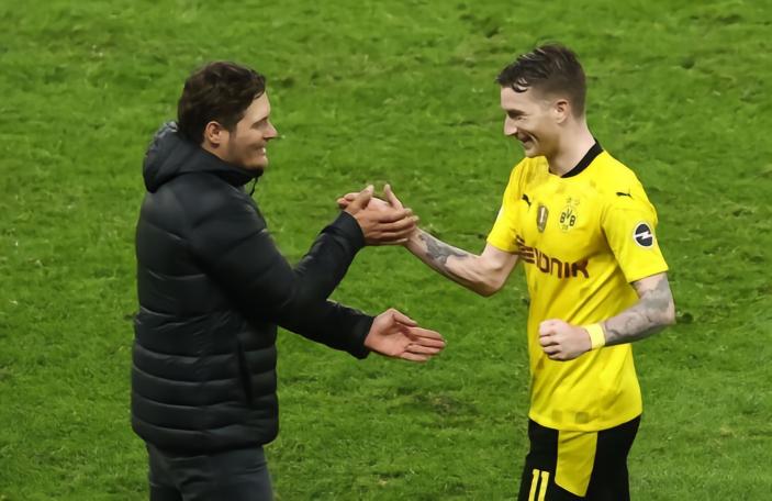 在德国杯决赛中多特蒙德4-1击败莱比锡,队史第五次获得德国杯冠军。多特蒙德队长罗伊斯在比赛中发挥出色,贡献了2次助攻。德国国家队主帅勒夫现场观看了本场比赛,勒夫表示罗伊斯最近几周找回了节奏。