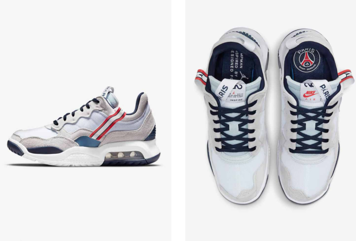跟过往几期一样,这期的出品也是一大批的服饰和鞋子例如新赛季主场球衣,总的而言,全套出品都是致敬Jordan品牌的篮球遗产。其中最主打的是新款限量版的Air Jordan7和Jordan MA2,这两款鞋子上面的飞人标志旁边都挨着巴黎圣日耳曼的品牌。