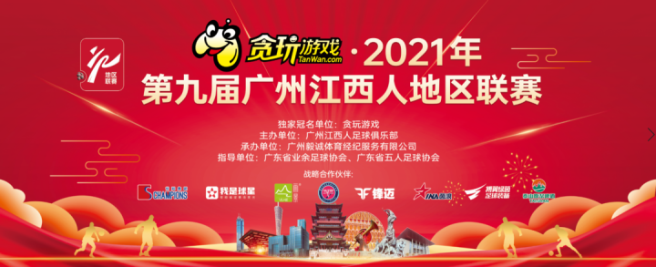 2021年5月15日,由贪玩游戏独家冠名的2021年第九届广州江西人地区联赛,在番禺菲客足球公园隆重开幕。广东省五人足球协会会长刘孝五、广东省业余足球协会会长邓国华、江西贪玩信息技术有限公司董事长吴旭波、广州江西人足球俱乐部总领队郑光杰、广州毅诚体育经纪服务有限公司总经理殷富诚及广东省江西商会各地市商会代表等二十多位领导嘉宾出席本次赛事开幕式。