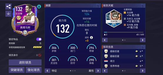 作为荷兰历史上著名的攻击手之一,奥维马斯实力毋庸置疑。在我们游戏中,奥维马斯同样是一张热门的左边锋球员。