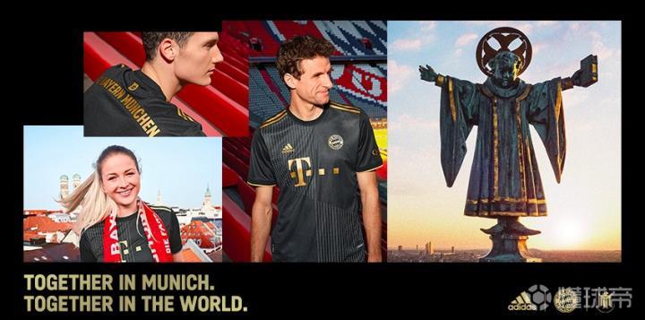 拜仁官方发布2021-22赛季客场球衣:黑金配色致敬慕尼黑