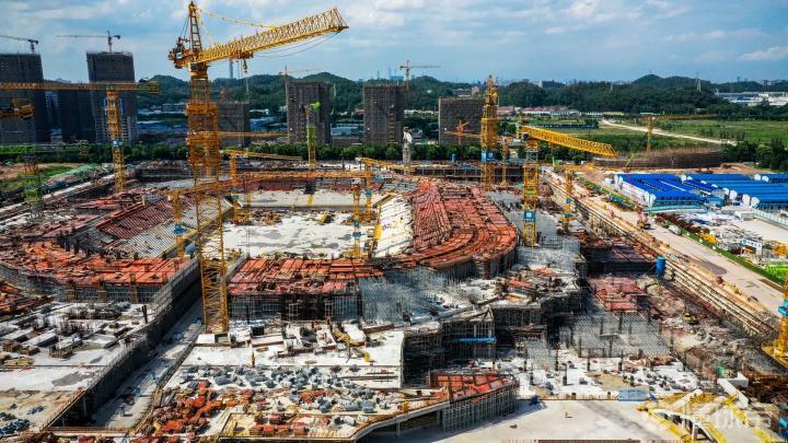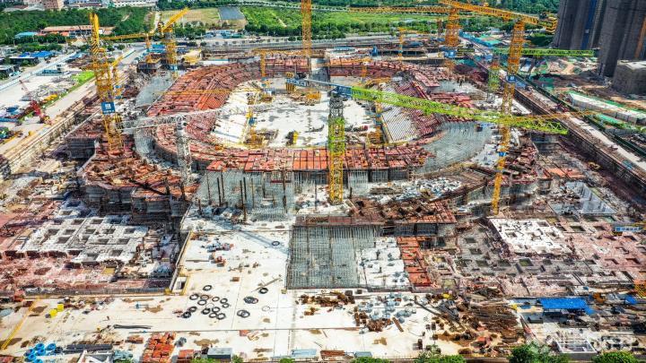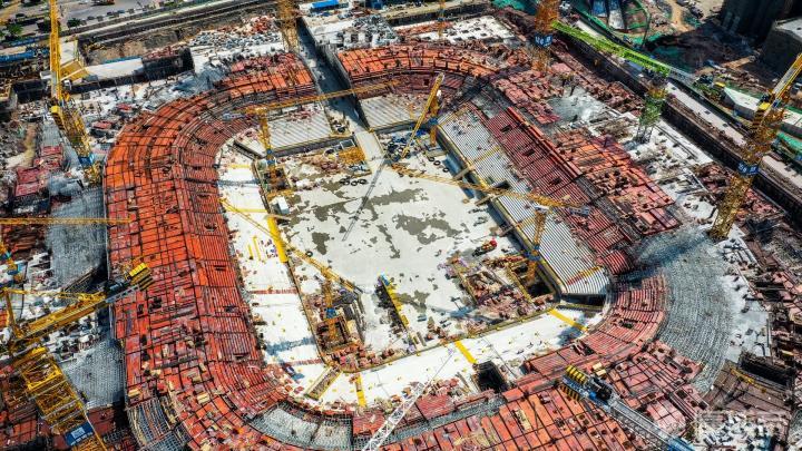 又到了每周一更广州恒大足球场最新施工动态的时候了(2021.05.19),近期36度室外高温,拍摄都异常辛苦,更别说工人们顶着烈日施工了,每座大型建筑的背后都有着无数打工人的辛勤付出,他们的付出对得起这高收入,向工人们致敬!球场进度方面,第一圈座位的上半部大部分已经做好模板,地面一层(第二圈座位底部)也是大部分做好模板,大家重点关注一下外围,特别是四个边角的底板和东西基坑边缘的破建进度好快,一旦四个边角和边缘平地面,土建的整体进度就会加快,因只剩下七层的地面主体(现在已经在建第一层了),而且越往上建,体量就越少……期待球场建设一切顺利[棒棒哒] (所有实拍图由冰蓝八妾提供)