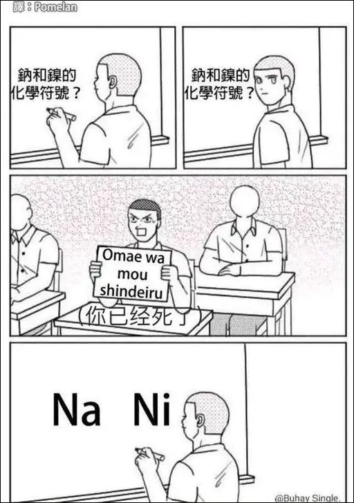 (通常对面这时候要接一句“纳尼”表示惊叹,