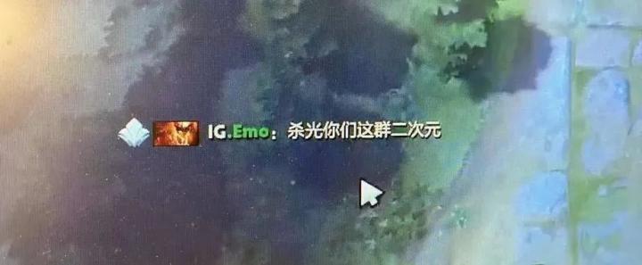 IG的中单Emo(20岁,00后)最近刚拿下Major冠军,风头正盛,估计是看腻了这帮二次元的嘴脸(误),扬言要「杀光你们这群二次元」。