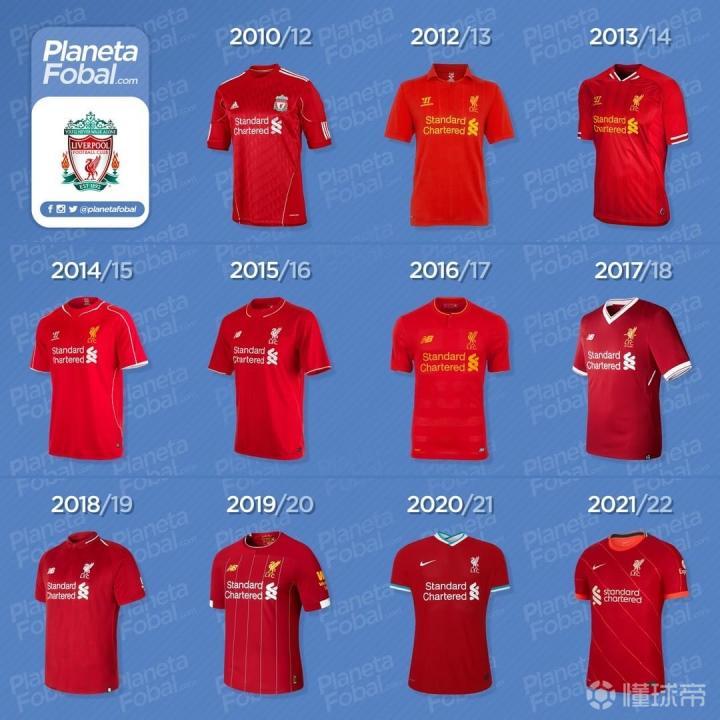 2010-2022赛季,利物浦主场球衣演变史