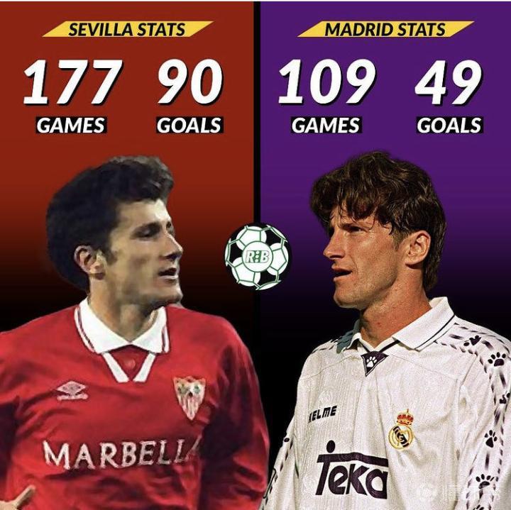 【数说足球】98年世界杯,达沃·苏克带领克罗地亚国家队先后挑落德国、荷兰,以世界杯季军的成绩为球迷送上了最好的礼物。 而身为塞维利亚、皇马等多家知名俱乐部的球员,苏克先生的职业生涯带来了无数精彩进球。附苏克在塞维利亚和皇马的数据对比: 塞维利亚:177场 90球; 皇家马德里:109场 49球;