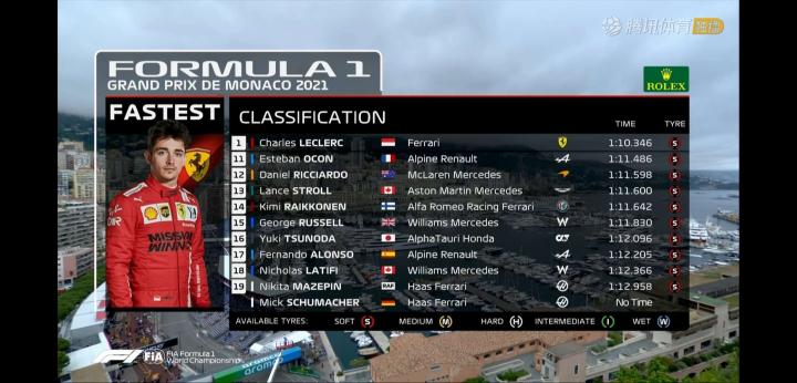 2021赛季F1摩纳哥站排位赛成绩:1.勒克莱尔...就是C罗 @懂球帝2021-05-22 22:172021赛季F1摩纳哥站排位赛成绩: 1.勒克莱尔 2.维斯塔潘 3.博塔斯 4.小塞恩斯 5.诺里斯 6.加斯利 7.汉密尔顿 8.维特尔 9.佩雷兹 10.吉奥维纳兹 11.奥康 12.里卡多 13.斯托尔 14.莱科宁 15.拉塞尔 16.角田裕毅 17.阿隆索 18.拉蒂菲 19.马泽平 20.米克·舒马赫(未参赛)展开更多