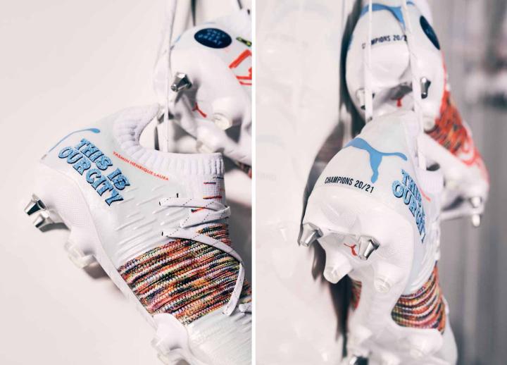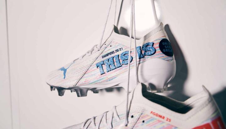 PUMA与来自法国的定制球鞋大师silni.art合作,并以“Spectra Pack”足球鞋套装中的FUTURE Z与ULTRA战靴为基础,为队中这5位PUMA签约球员打造出定制战靴。球鞋上加入以天蓝色呈现的口号“This is our City”(这就是我们的城市),以及本赛季主场球衣所用到的马赛克团。球鞋后跟上还加入带有“Only See Great”(只看见伟大)的圆形徽章以及“Champions 20/21”(2020/21赛季冠军)字样。此外,每双定制战靴上还加入球员专属ID等细节。