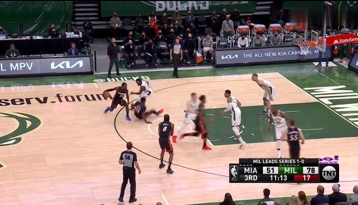 末节决战,阿德托昆博上篮命中,德拉季奇跳投命中,紧接着希罗三分也进,雄鹿队请求暂停。暂停回来,戴德蒙补篮打进,随后霍乐迪完成抢断补篮打进,此后双方鸣金收兵,派上替补阵容,最终雄鹿队大比分战胜热火,系列赛大比分来到2-0。