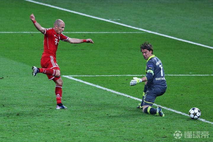 【足球故事】2013年5月25日,欧冠决赛,拜仁2:1多特夺冠。 双方不遗余力地大打攻势足球,难得一见如此酣畅淋漓的欧冠决赛。两队的绝对机会都不少,但运气站在了实力占优的拜仁一边……罗本89分钟的绝杀; 11/12赛季德甲联赛拜仁不敌多特屈居联赛第二,同年欧冠决赛4:5的比分看蓝军捧杯;12/13赛季拜仁一洗雪耻力克多特夺得联赛冠军,同年欧冠决赛拜仁以2:1的比分让大黄蜂本赛季尽显失意; 其实克洛普打造的多特让人感到十分惊艳,他们半决赛对阵皇马让人印象深刻,但是没了欧冠冠军,再加上其他球队对球队青年才俊的垂涎,让这支青年近卫军的未来没能延续多久!