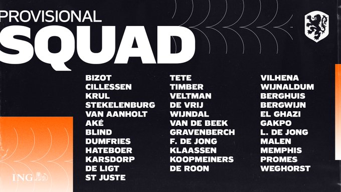后卫:范安霍尔特(水晶宫),阿克(曼城),布林德(阿贾克斯),邓弗里斯(埃因霍温),哈特鲍尔(亚特兰大),卡尔斯多普(罗马),德利赫特(尤文图斯),圣朱斯特(美因茨),泰特(富勒姆),廷贝尔(阿贾克斯),费尔特曼(布莱顿),温达尔(阿尔克马尔),德弗赖(国际米兰)