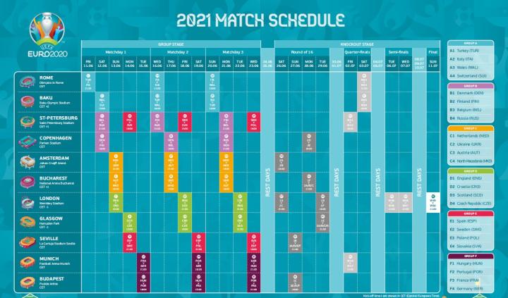 附:2020欧洲杯完整赛程表