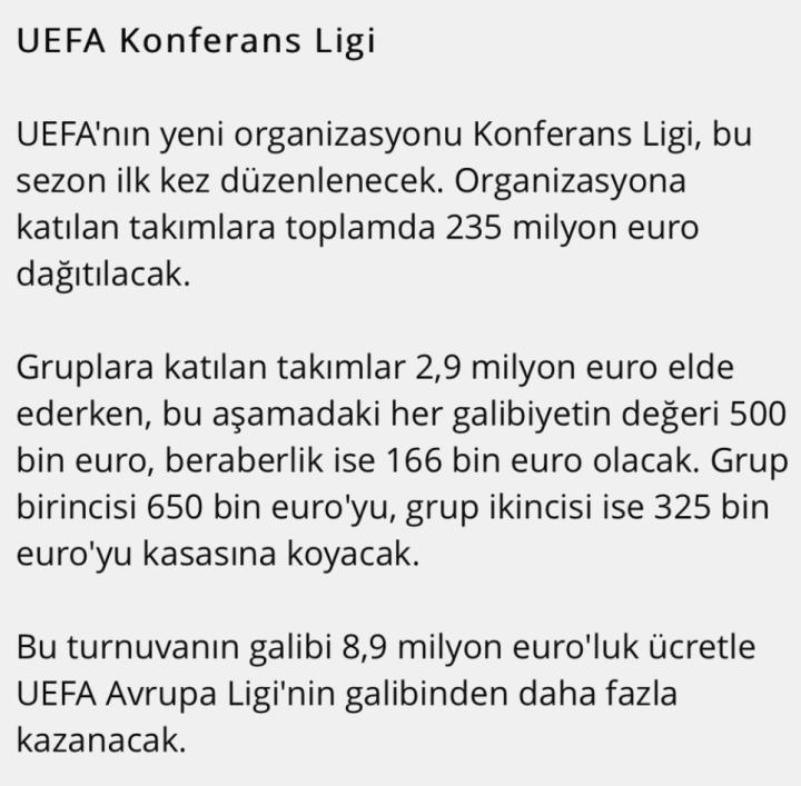 欧会杯是欧足联新成立的欧战赛事。将从2021-2022赛季开始举办。总奖金为2.35亿欧元,小组赛参赛球队将分别获得290万欧元的奖金。小组赛获胜时可获得50万欧元,平局时可获得16.6万欧元,小组赛第一名的球队可获得65万欧元,第二名的球队可获得32.5万欧元。 该赛事的冠军奖金为890万欧元,高于欧联杯的冠军奖金。