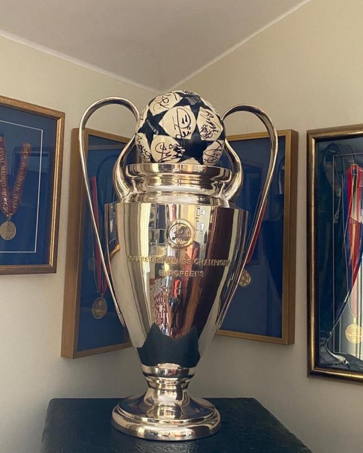穆帅附文写道:盖尔森基兴,2004年5月26日。真正的“大耳朵杯”已成为历史,复制品留在家中(以及一个足球)。