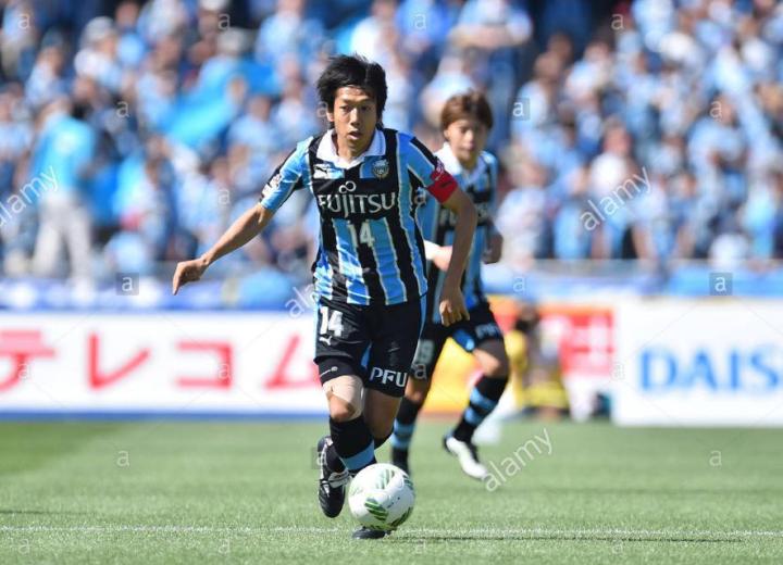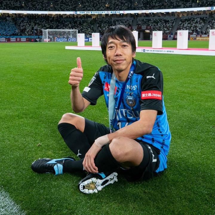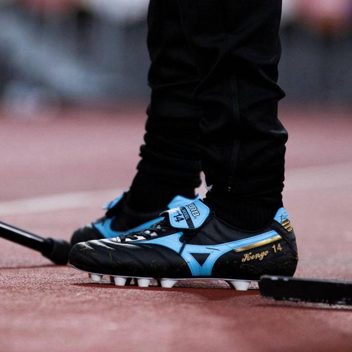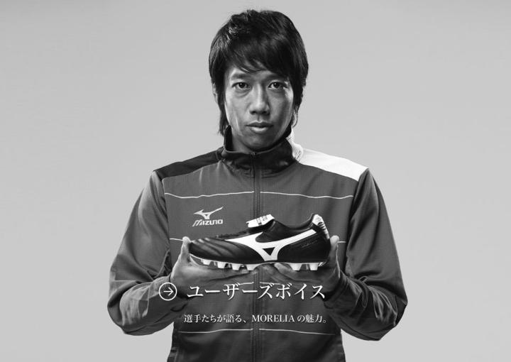下面这位也是日本足坛的大哥级人物,中村宪刚,他同时也是日本国内的mizuno morelia头号代言人,基本他的职业生涯都穿的morelia 2球鞋,一成不变,司职中场的中村宪刚一直效力川崎前锋,是球队的中场核心,表现稳定,多次入选j联赛最佳阵容,在2016年36岁还获得过日本足球先生称号。mizuno为了感谢他的多年合作,在他退役前,给他推出了一双黑蓝配色的球鞋。