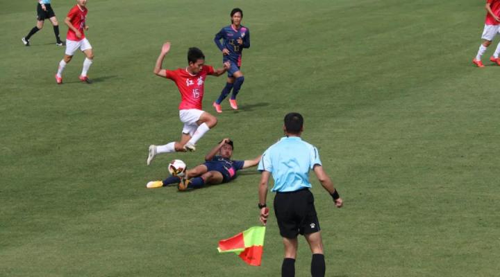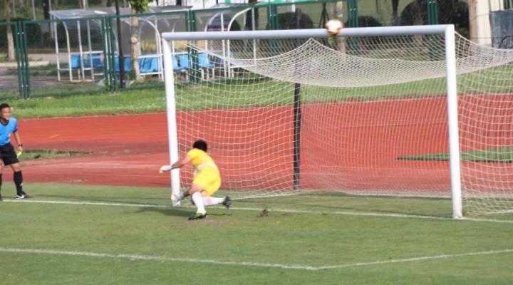 第40分钟,李贤成中场发出任意球,球吊入禁区内,被对方守门员双拳击出,随后曹越涛的头球射门击中横梁。