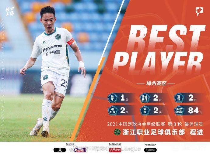 浙江队球员程进,第8轮比赛率队5-4翻盘,他打进1球,还有2次威胁传球,2次直塞,被犯规2次,解围2次,传球成功率达到84%。