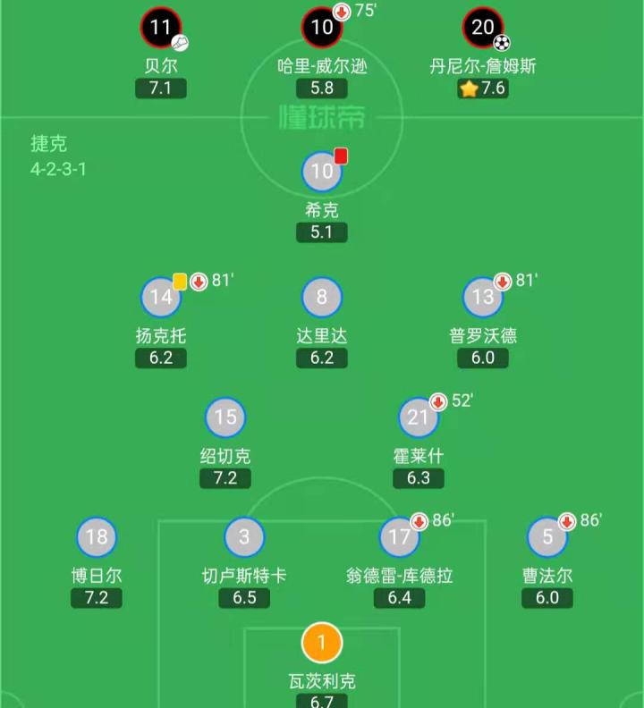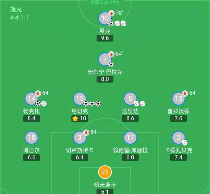 3月份世预赛捷克6-2爱沙尼亚首发阵容。