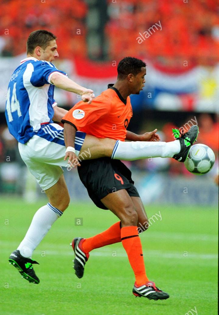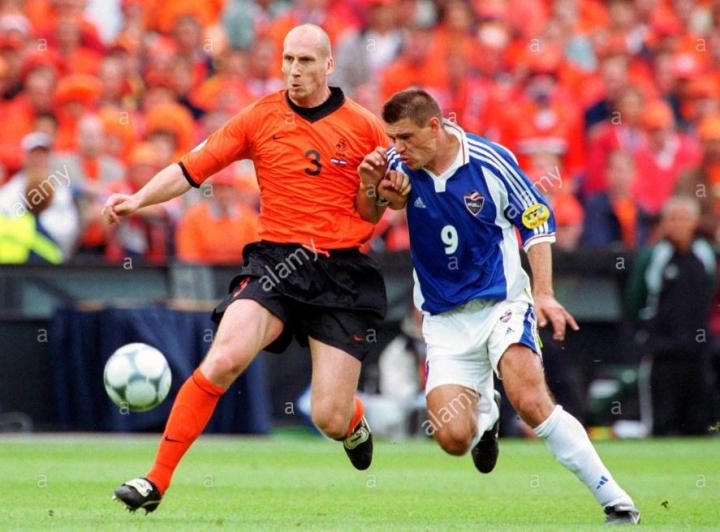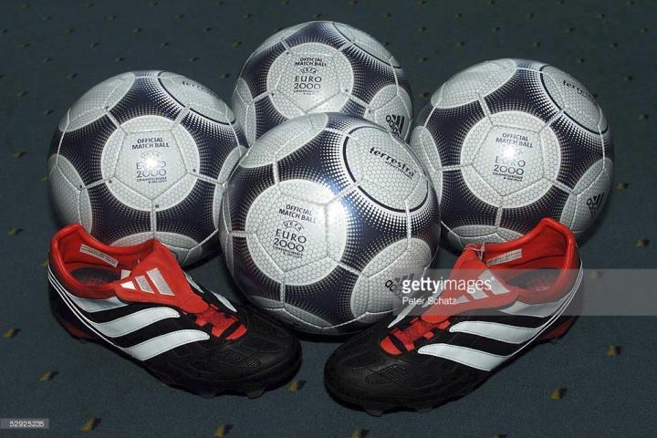 2000年欧锦赛,一场比赛造就了两位最佳射手,那就是四分之一决赛荷兰6比1狂胜南斯拉夫的比赛。那场比赛中荷兰中锋克鲁伊维特上演大四喜,瞬间将进球数锁定在5个。而南斯拉夫队的主力射手米洛舍维奇在小组赛阶段表现优异,打入4球,在这场大屠杀中打入了挽回颜面的一球,最终以5球和克鲁伊维特并列最佳射手。米洛舍维奇当时穿的球鞋是nike的tiempo premier。而克鲁伊维特当时还是adidas猎鹰5代的代言人。理论上讲,他获得金靴奖奖杯应该就是猎鹰5造型的,在2000年以后,欧洲金靴奖的奖杯就是猎鹰5造型的。