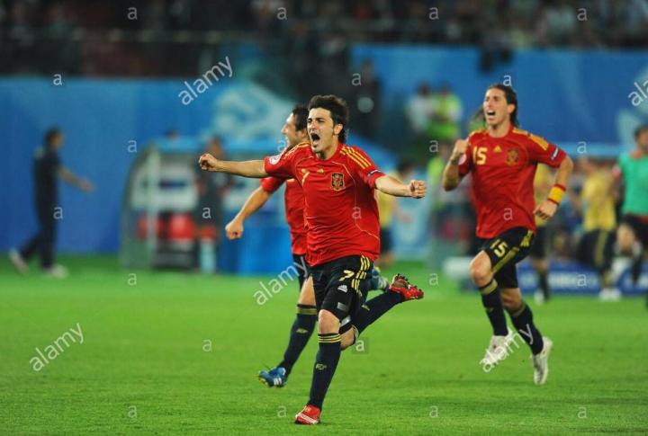 2008年欧洲杯,西班牙队获得冠军,队中的主力得分手大卫比利亚以4球获得最佳射手。其实比利亚因为半决赛之后因为大腿肌肉拉伤无法出战决赛,才有了托雷斯在决赛中一剑封喉的好戏。葫芦娃当时是adidas f50系列的头牌代言人,他当时使用的是红色的f50.8 tunit球鞋。