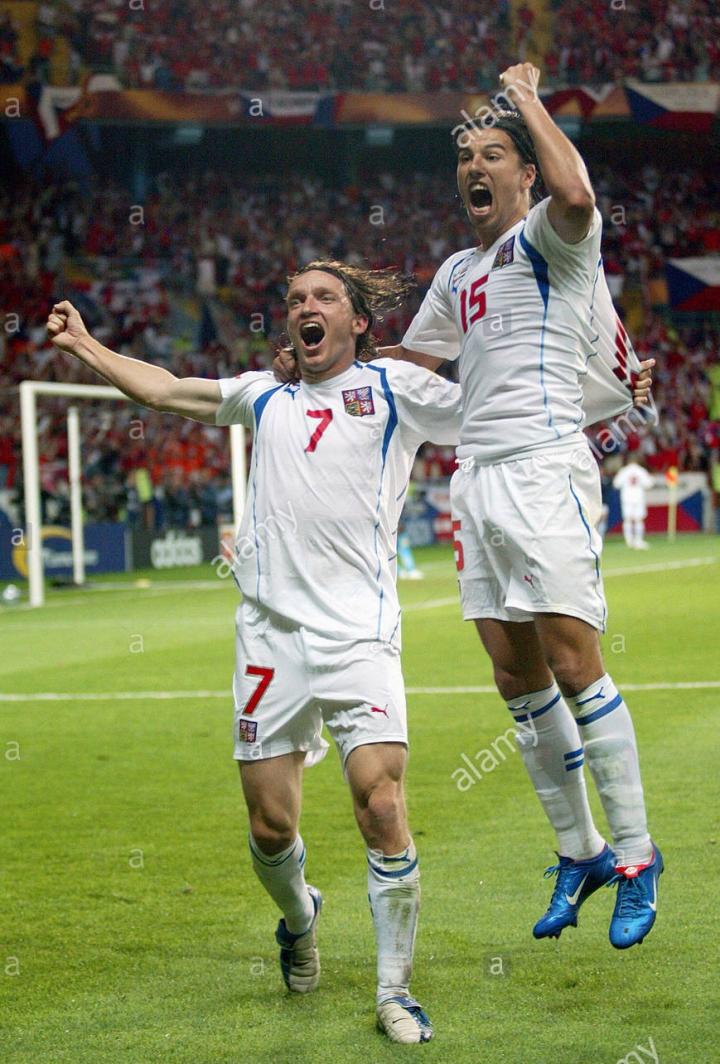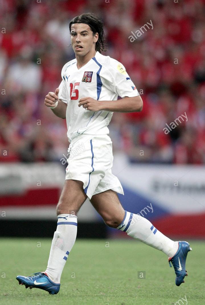 2004年欧锦赛的最佳射手是捷克快马巴罗什,当时他在利物浦刚刚经历了严重的脚踝伤病,没想到伤愈复出后,状态如此神勇,为捷克打入5球,并且杀入四强。不过当时捷克队的实力也是非常强劲,拥有巅峰时期的内德维德。巴罗什当时使用的球鞋是耐克的刺客2代,当时大部分球员都穿的金色,但巴罗什选择的蓝色的R9配色。