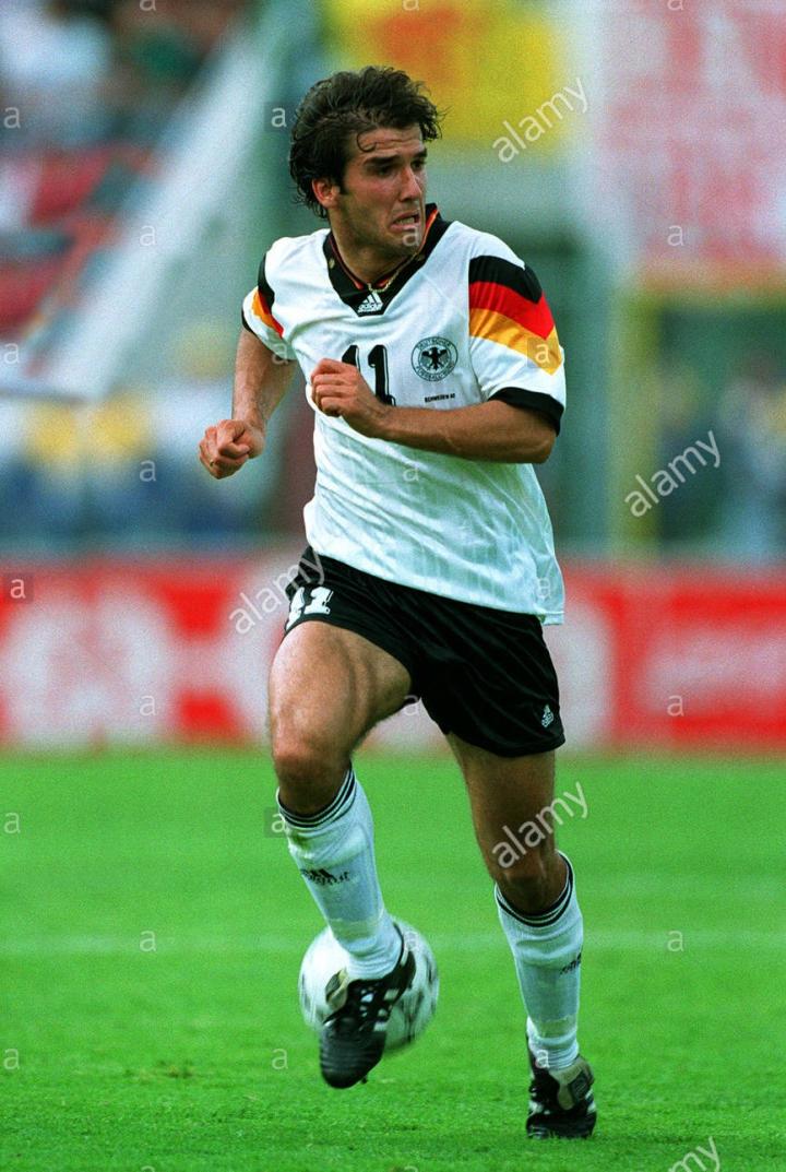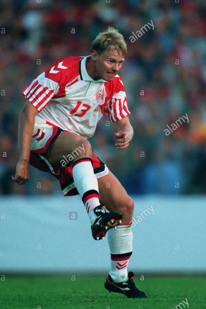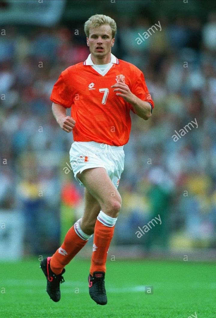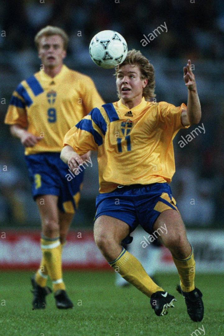 1992年欧锦赛的最佳射手就有点复杂了,一共有四位,他们都打入了3球,当时的欧锦赛只有8支球队参加,最多只有5场比赛。四位射手中名气最大的是冰王子博格坎普,他当时使用的球鞋是他的恩师克鲁伊夫的自创品牌,克鲁伊夫足球鞋。而德国队的里德尔,穿的是adidas的world cup,这是当时德国队的标配。名气第三的是瑞典娃娃脸布洛林,他是90年代初最早和耐克签约的一批球员,当时他效力于意甲帕尔马,使用的是1992年刚刚发布的tiempo premier。最后一位就比较无名了,但却是左右了欧锦赛结果的球员,他的名字叫亨里克拉尔森,但不是我们熟悉的瑞典前锋,而是最终冠军丹麦队的中场13号。他在和荷兰队的半决赛中,梅开二度,将荷兰拖进了点球大战。他穿的鞋是1992年欧锦赛巴斯滕同款的diadora basten super star,结果在点球大战把巴斯滕给淘汰了。