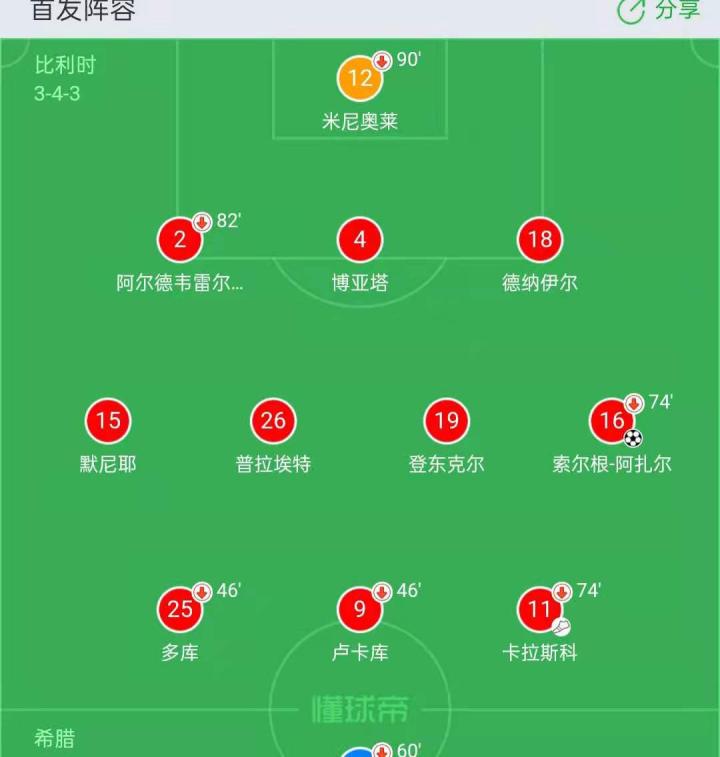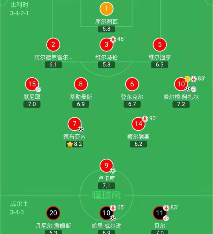 25-多库(46'14-梅尔滕斯)、11-卡拉斯科(73'24-特罗萨德)分别为右边锋和左边锋,同时肩负部分回追防守任务。