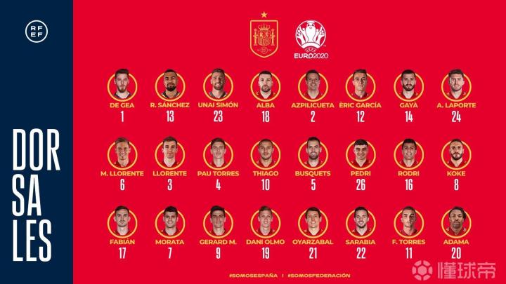 前锋:奥尔莫(莱比锡红牛),奥亚萨瓦尔(皇家社会),莫拉塔(尤文)杰拉德-莫雷诺(黄潜),费兰-托雷斯(曼城),阿达玛-特拉奥雷(狼队),萨拉维亚(巴黎)