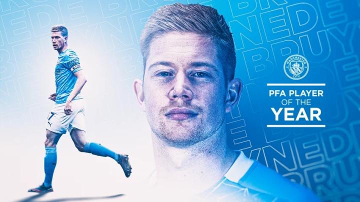 德布劳内蝉联PFA年度最佳球员奖,比肩C罗和亨利,福登获年度最佳年轻球员奖 (注:PFA是英格兰职业足球运动员协会,英语全称 Professional Footballers' Association,是英国职业足球运动员的工会组织)