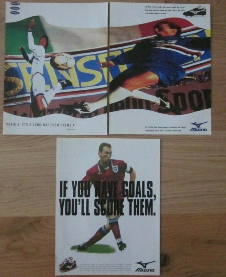 当时mizuno比较重视的市场,除了意甲,就是英超,而把mizuno带到英格兰的球星,就是大卫普拉特,他在1990年世界杯一球成名,1991年从阿斯顿维拉转会意甲巴里队,此时美津浓赞助了普拉特。他还曾被尤文图斯购入,但效力一年后加盟了桑普多利亚。在桑普多利亚时期,普拉特成为了mizuno的主力代言,1995年普拉特回到英超加盟阿森纳,mizuno品牌也开始将重心转移到英超,当时他曾经代言过意大利产的美津浓dp international。