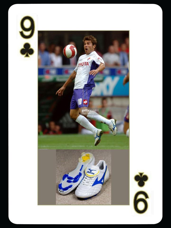 接下来这位球员大家肯定想不到,那就是罗马尼亚传奇球星穆图,穆图的足球生涯已经不能用简单传奇来形容了,而他和美津浓的合作也是分分合合,一波三折。2001年他在维罗纳时期签约了mizuno。2002年在帕尔马,他使用的是和里瓦尔多同款wave cup,表现超强。被切尔西高价引进后,穆图炙手可热,adidas和他签订了赞助合同。没想到在切尔西穆图因为吸毒名声扫地,后加盟尤文图斯。但adidas在2007年并没有和穆图续约,毒蛇又和mizuno再续前缘,穿的是当时非常罕见的新款wave cup,并且是定制款。