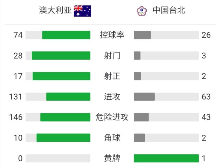 澳大利亚5-1中国台北,米切尔-杜克梅开二度,塞恩斯伯里破门
