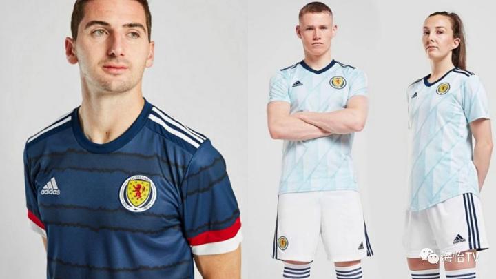 环纹是苏格兰主场球衣的重要组成部分,在球队历史上也曾多次出现在球衣上。画家和素描艺术家希望通过手绘对经典进行现代诠释来实现这一标志性设计元素的现代化。苏格兰代表队客场球衣上拥有白色与浅蓝色组合而成的复古集合图案,让人不禁想到晴朗的天空。简约的V领与肩膀上的阿迪达斯胜利三条纹则采用色彩对比强烈的海军蓝色装饰。带有海军蓝色细节的白色球裤与球袜共同构成苏格兰代表队2021年完整的客场形象。