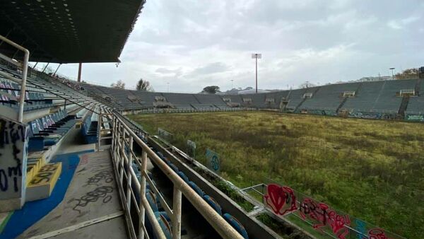 编者按:弗拉米尼奥体育场建成于1958年,靠近罗马的弗拉米尼奥区,原有座位40000,后来减少到30000,是罗马城第二大体育场。如果按照没有跑道的体育场来算,则是罗马城第一大体育场。该体育场举办过1960年奥运会足球比赛的决赛,也曾经成为罗马双雄的主场,还举办过U2、迈克尔杰克逊、滚石乐队等演唱会。体育场2000年后更多用来进行橄榄球比赛,但由于维修维护费用过大,橄榄球联盟将其放弃,目前所有权属于意大利足协,球场至今已经荒废10多年。