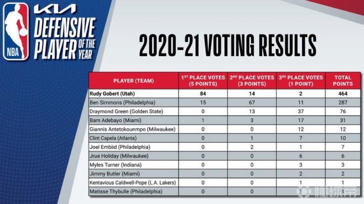 官方:鲁迪-戈贝尔当选年度最佳防守球员 后仰上篮 后仰上篮2021-06-10 09:13NBA官方宣布,爵士中锋鲁迪-戈贝尔当选本赛季年度最佳防守球员。戈贝尔本赛季场均拿到14.3分13.5篮板2.7盖帽,带领爵士取得联盟第一的成绩。在投票中,他获得100张第一选票中的84张,毫无悬念获得DPOY。这是戈贝尔的第3个DPOY奖杯,他追平了“魔兽”霍华德成为拥有这一奖杯第二多的球员,第一是“穆大叔”穆托姆博和本-华莱士的4次。展开更多