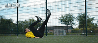 第二个胫骨颠球,这可能是看起来最尴尬的颠球方式,和脚后跟颠球一样,我们需要把胫骨保持水平才能完成这个颠球动作。