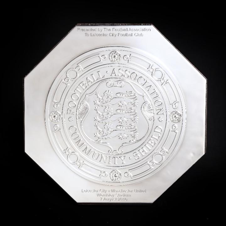 2016年8月7日,莱斯特城作为英超联赛的冠军,在该赛季的社区盾决赛中对阵2016年足总杯冠军曼联。由于参加了这场比赛,英足总向我狐赠送了这个银色的社区盾复制品。