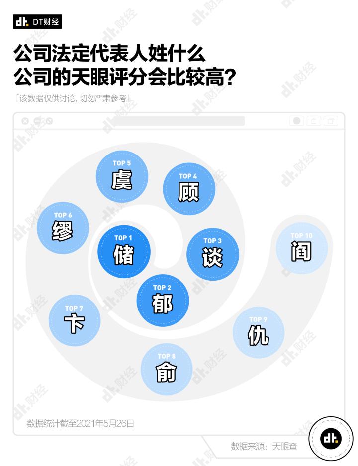 突然提起这些姓氏,你或许会一时摸不着头脑,它们都有什么比较耳熟能详的企业和法定代表人吗?DT君随手搜了一下,就发现好几个大佬,比如房地产万科企业的郁亮,招商银行的缪建民,还有华策影视的傅梅城。