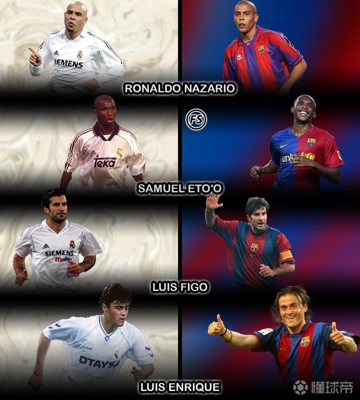 【既效力过巴萨又效力过皇马的球员】罗纳尔多:19...Verdy足球回忆 @懂球帝2021-06-10 22:28【既效力过巴萨又效力过皇马的球员】 罗纳尔多:1996-1997(巴萨)、2002-2007(皇马) 埃托奥:1999-2000(皇马)、2004-2009(巴萨) 菲戈:1995-2000(巴萨)、2000-2005(皇马) 恩里克:1991-1996(皇马)、1996-2004(巴萨) 除了他们,还有没有球员曾效力过皇马和巴萨两支球队的?展开更多