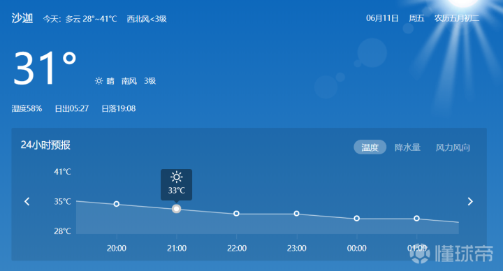 北京时间明天凌晨1:00(阿联酋当地时间21:0...小文数据足球 @懂球帝2021-06-11 12:45北京时间明天凌晨1:00(阿联酋当地时间21:00),国足将对战马尔代夫国家队,届时沙迦的温度约为33℃,风力为2级。与上场比赛相比,这场比赛时的温度基本没有变化。展开更多