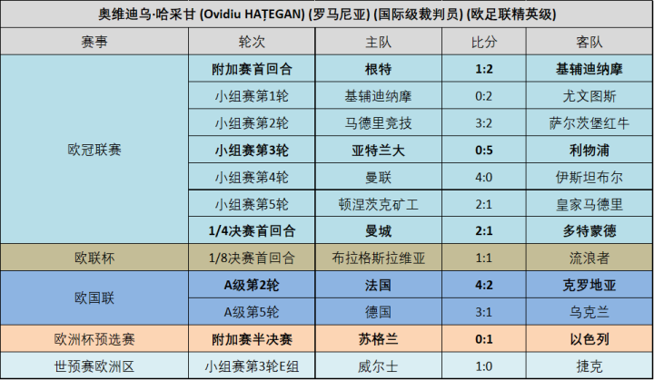 罗马尼亚国哨哈采甘生于1980年7月14日,即将迎来自己的41岁生日,自06年起执法罗马尼亚顶级联赛,2008年成为国际级裁判员,也是欧足联重点培养对象之一,多年前便已得到了欧足联裁委会的青睐,曾执法2016年欧洲杯。但哈采甘的生涯则比较坎坷,2017年在执法俄罗斯世界杯预选赛欧洲区附加赛北爱尔兰与瑞士的首回合较量时,哈采甘认定北爱尔兰球员埃文斯在本方罚球区内手球犯规,判罚点球,瑞士凭借这例点球1:0战胜北爱,次回合双方战成0:0平,这唯一的进球将瑞士队送入了俄罗斯世界杯的大门,但这次判罚在赛后受到了各界的严厉谴责,被认定为严重误判,原本半只脚已经踏入俄罗斯的哈采甘也无缘世界杯执法。